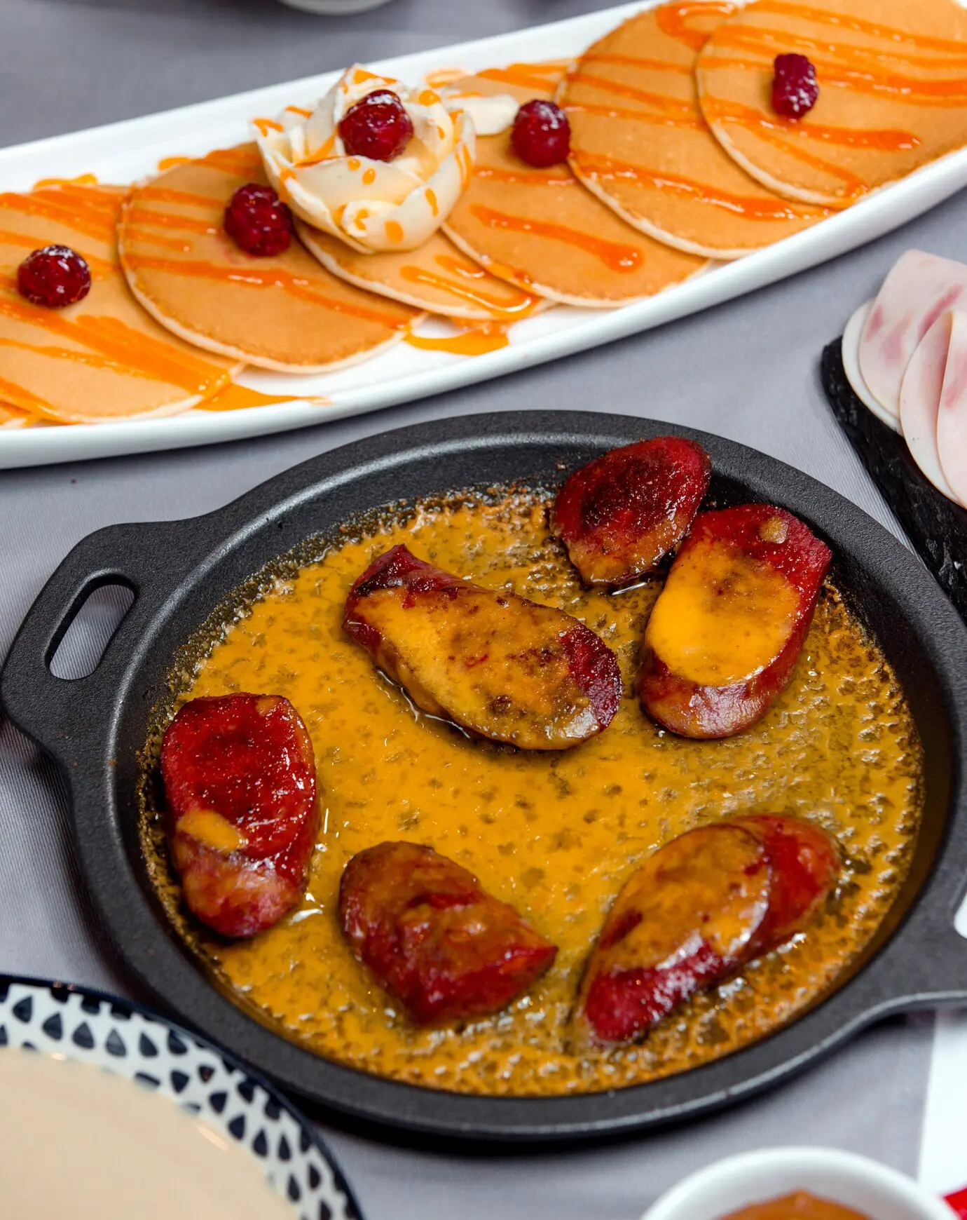 Nuestro menú incluye: berenjenas gratinadas, gazpacho andaluz y ensaladas con queso de cabra local."